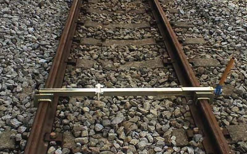 軌間整正器 ネジ式 CS-7SB 幹線用 一人で操作できるので、作業人員・器具が最小限で済みます。絶縁構造になっており、ハンドルは脱着可能です。 脱線防止ガード個所でも使用可能です。 キャッチ有効長 1083mm~1446mm カタログ ←作業機械