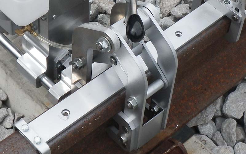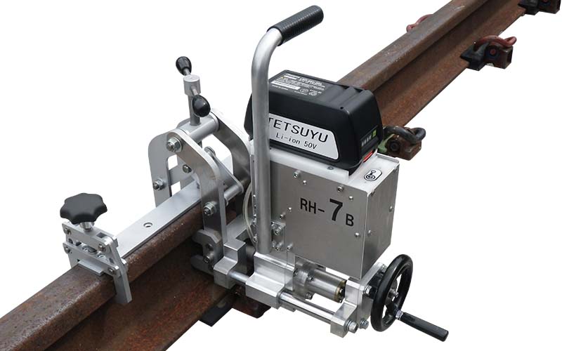 ECHO共通バッテリーを使用した充電式のレール穴開け機。一度の充電で約22穴の穴開け※が可能となり、メタルボーラーは弊社RH-5と同じものが使用可能なため、別途RH-7B用にメタルボーラーを購入する必要はありません。位置基準バーの使用で、位置合わせの際のケガキ、ポンチ作業が不要になります。