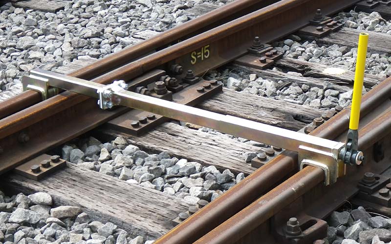 軌間整正器 ネジ式 CS-7NB 一人で操作できるので、作業人員・器具が最小限で済みます。絶縁構造になっており、ハンドルは脱着可能です。 一般区間に加え、分岐器の軌間整正が一台で可能になっています。 キャッチ有効長 1006mm~1261mm カタログ ←作業機械