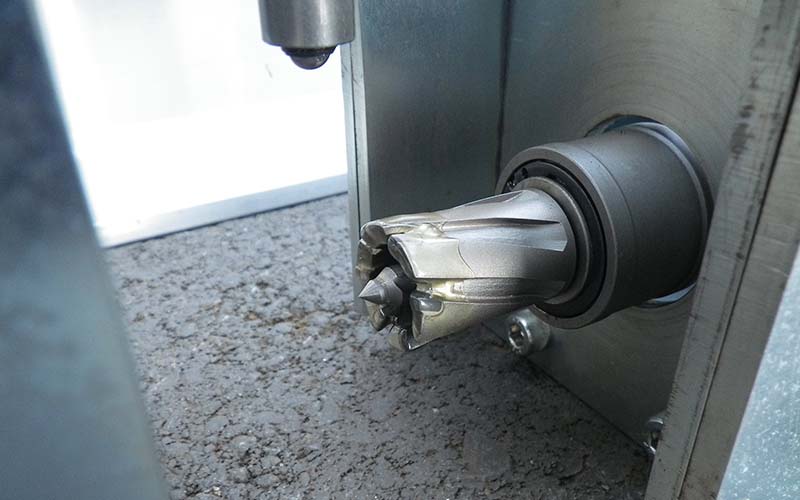 軽量で小型な箱型のため、運搬・作業が楽に行え、調整ハンドルを「レール種別マーク」に合わせるだけでレール全種の継目穴ガードレール、ヒールの穴あけができます。また、位置基準バーを使用すれば、位置合わせの際にケガキ、ポンチ作業が不要になります。「メタルボーラー」の着脱はカップリング方式のため、工具も不要です