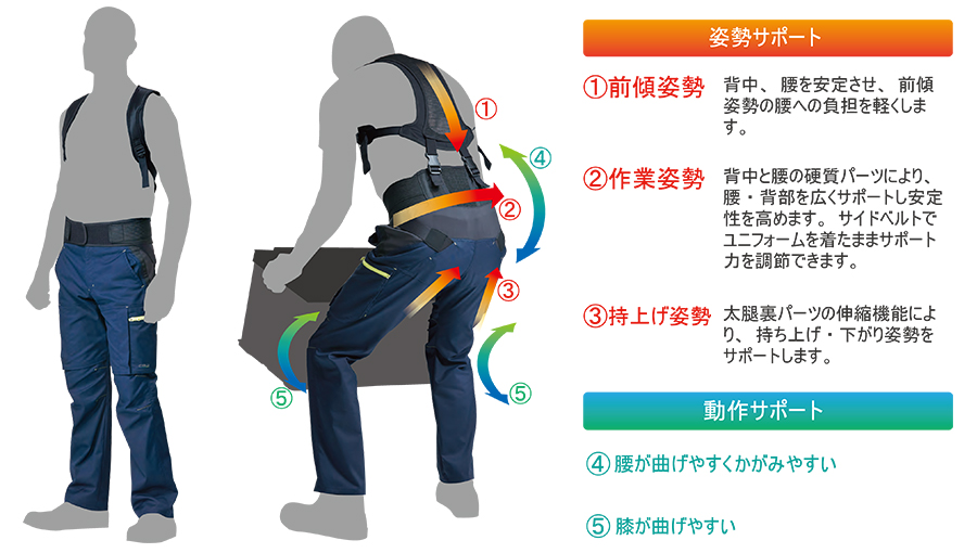 CBW (コンディショニング・ブレイス・ウェア) とは、持ち上げ姿勢・動作を支えるサポーター一体型ウェアです。