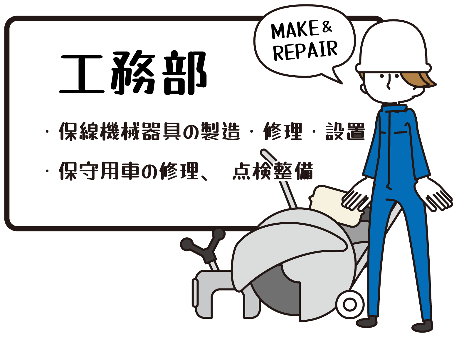 鉄道保線機械器具の製造・販売・設置、保守用車の整備や信号炎管などの周辺商品の販売をしています