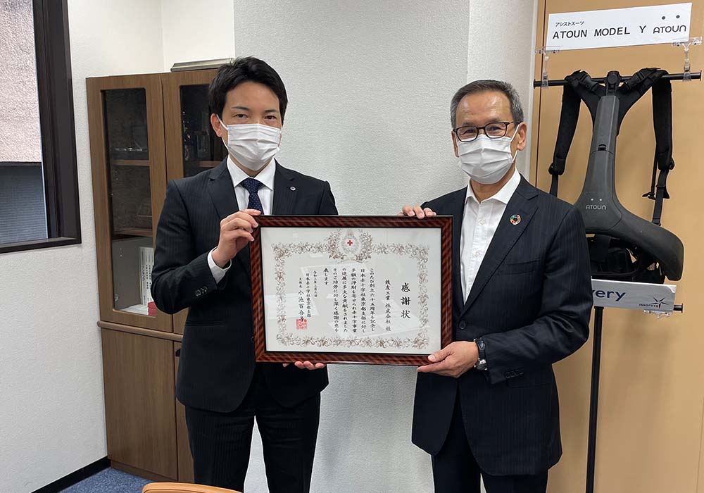 2021年5月某日、日本赤十字社東京都支部の方が来社され、感謝状をいただきました。