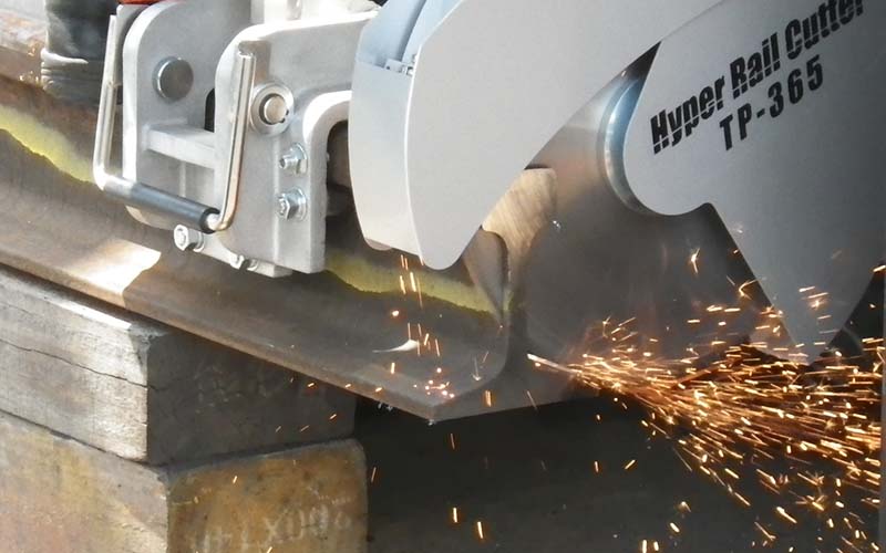従来の切断機に比べ、火花が抑えられ安全性が向上、切断時間も大幅に短縮され、現場での作業性もアップしています。作業時の排出物はレールの切粉のみになり、チップソーも再研磨が可能なため、環境にも優しくなっています。