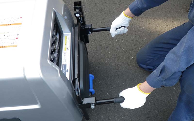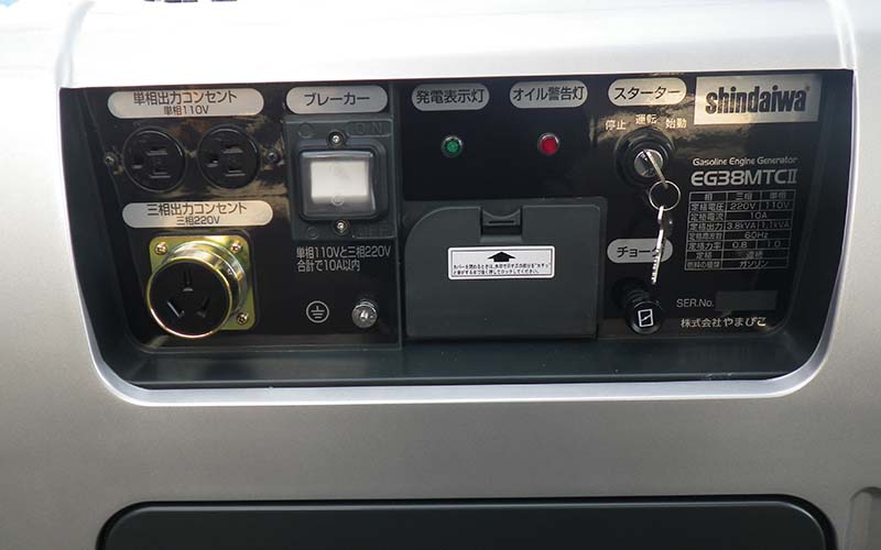 防音型三相発電機 EG38MTCⅡ 静音性を維持しながら、今までの機器よりもエンジン出力を約2割アップしました。また、セル方式により始動も楽におこなえます。(リコイル始動も可能です) 各種照明ポールの装着が可能で、受台には脱落防止のチェーンも付いているため、安心して使用することができます。 ※製品には照明、及びポールは付きません。 寸法 814mm×545mm×660mm 騒音値 62dB(A)/7m 重量 約90kg ※軌道車輪・運搬ハンドル除く カタログ ←作業機械