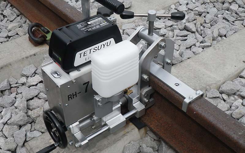 ECHO共通バッテリーを使用した充電式のレール穴開け機。一度の充電で約22穴の穴開け※が可能となり、メタルボーラーは弊社RH-5と同じものが使用可能なため、別途RH-7B用にメタルボーラーを購入する必要はありません。位置基準バーの使用で、位置合わせの際のケガキ、ポンチ作業が不要になります。